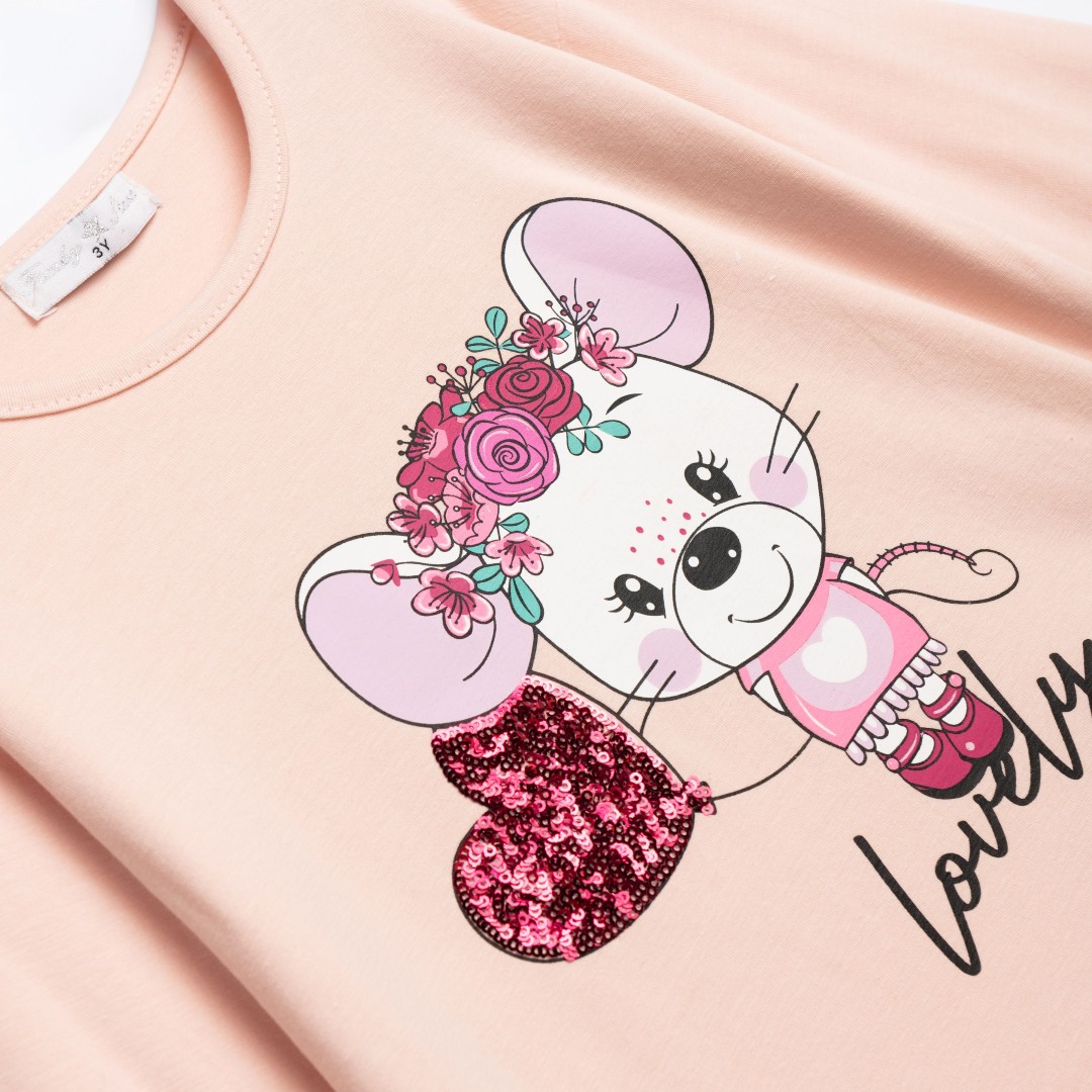 Μπλούζα κάλτσα για κορίτσι 2-6 ετών σε χρώμα nude pink με τύπωμα (ποντικάκι).Σύνθεση 95% cotton – 5% elastan