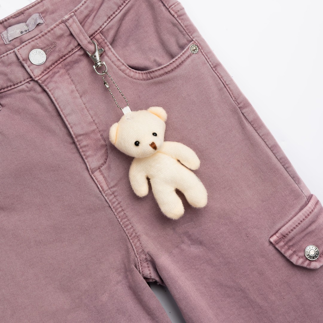 Παντελόνα τζίν λύκρα μαλακό με πλαΐνές τσέπες και μεταλλικό μπρελόκ αρκουδάκι για κορίτσι 6-16 χρονών σε χρώμα καμέλια.Σύνθεση 98% cotton – 2% elastan.