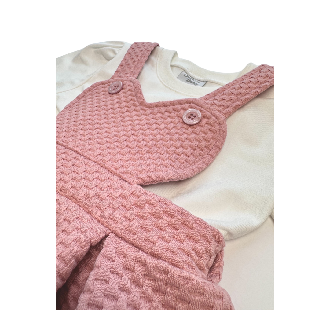 Σέτ μπλούζα με φούστα και τιράντες κορίτσι 06-024 μηνών σε χρώμα ρόζ/ εκρού. Σύνθεση 80% cotton – 20% elastan