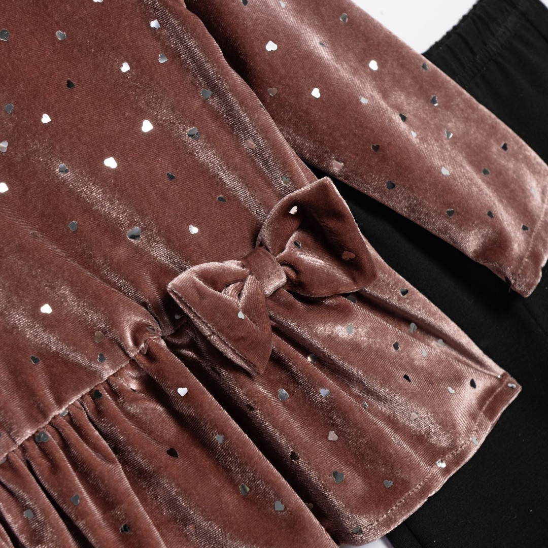 Σετ 2τεμαχίων μπλουζοφόρεμα με φιόγκο και κολάν κάλτσα λύκρα για κορίτσι 6-24 μηνών σε χρώμα σκούρο ροζ/μαύρο.Σύνθεση 95% cotton – 5% elastan+95% polyester – 5% elastan