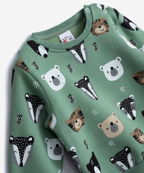 Φόρμα φούτερ μηνών αγόρι οε σε greenland allover/ καπουτσίνο χρώμα. Σύνθεση 50%cotton-50%polyester. https://joyhappykids.gr