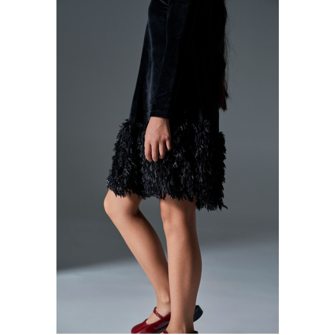 Φόρεμα βελούδο με γούνα στο τελείωμα κορίτσι τύπος σε χρώμα μαύρο 6-16 ετών.Σύνθεση 92%pes-8%sp